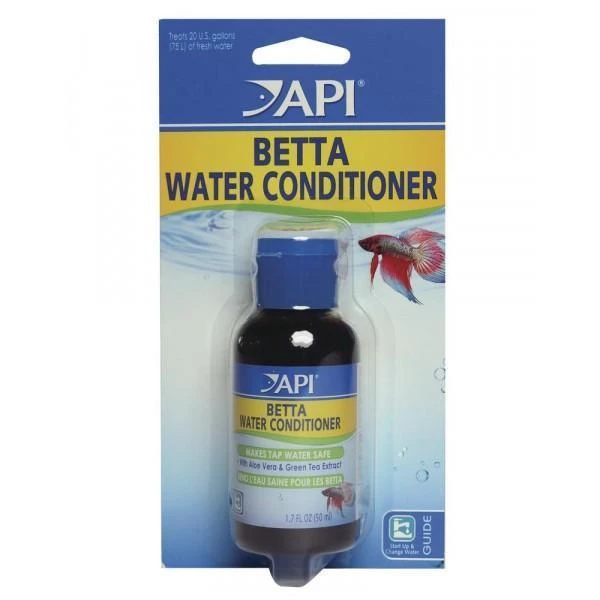 API® BETTA WATER CONDITIONER is a multi-purpose water treatment that instantly makes tap water safe for Bettas by removing chlorine, chloramines, and heavy metals, in addition to detoxifying ammonia. API BETTA WATER CONDITIONER also contains Aloe Vera to reduce stress and inflammation of damaged tissue, and promotes healing and oxygen transfer across gills, as it creates a synthetic slime coat for your Betta that minimizes susceptibility to disease. The Green Tea Extract ingredient acts as an antioxidant in a Betta’s red blood cells.
