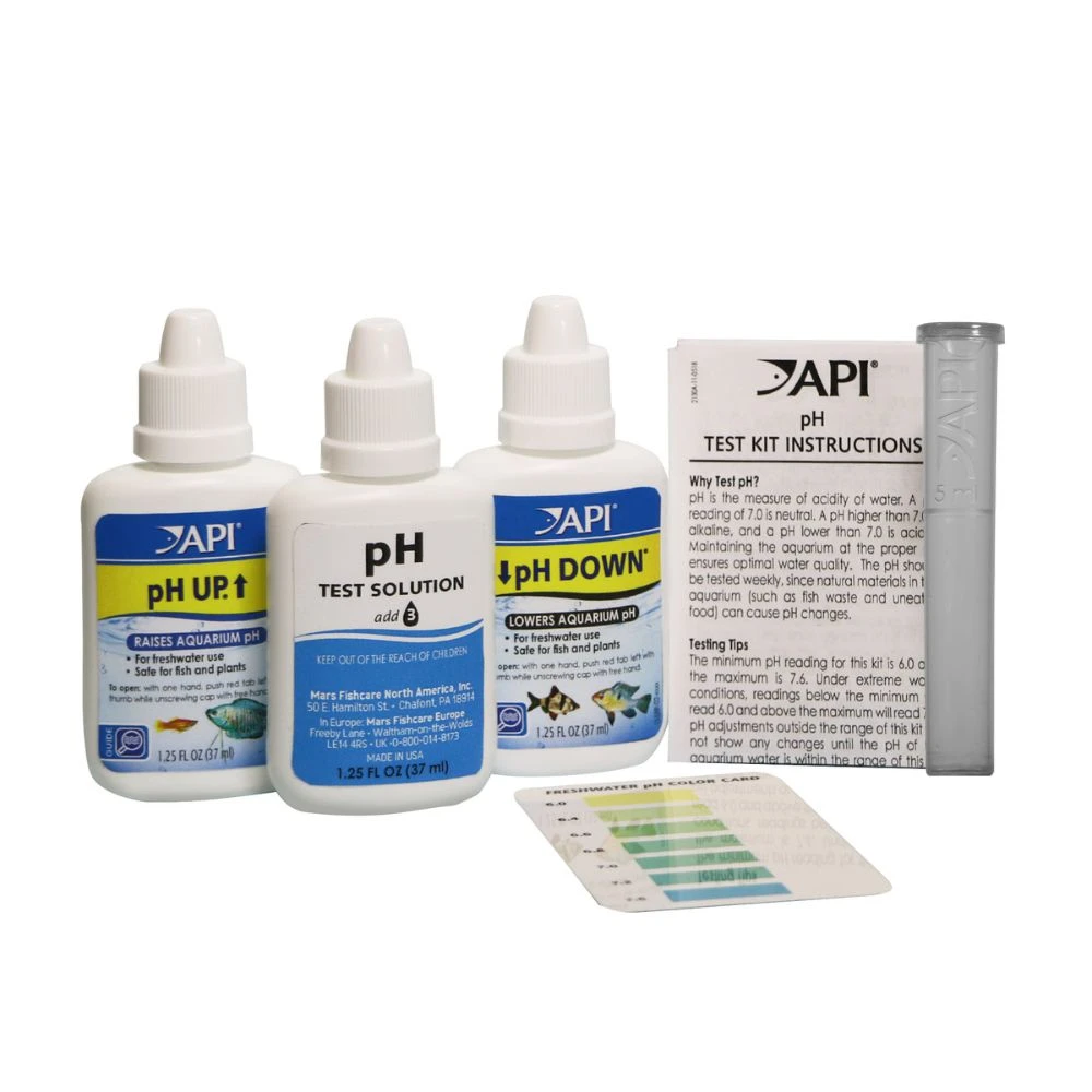 The API® pH TEST & ADJUSTER KIT not only allows you to easily and accurately test the pH level in your freshwater aquarium, but also allows you to adjust it to a safe parameter for your fish. The pH TEST & ADJUSTER KIT tests pH from 6.0 to 7.6, and includes bottles of pH Up and pH Down to modify pH in aquarium water to desired levels.