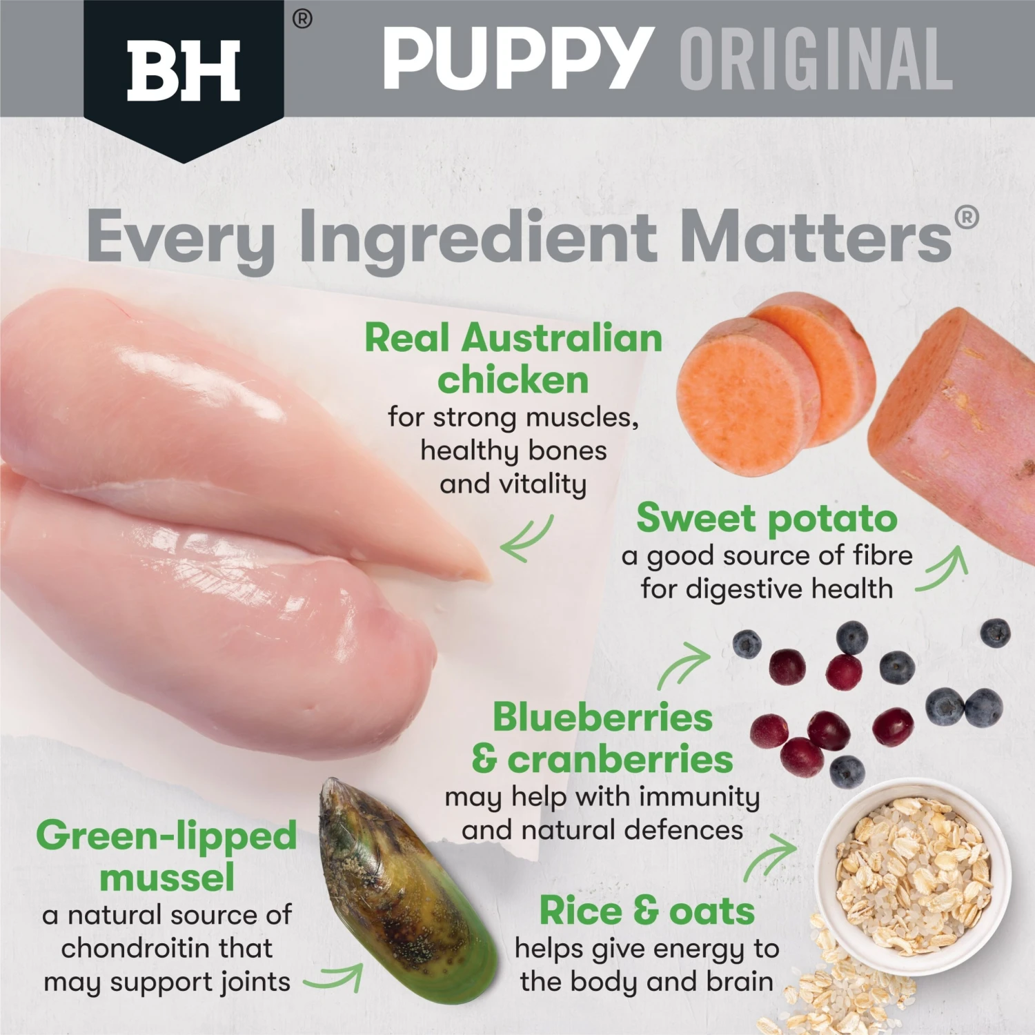 - Antioxidant-rich berries boost your puppy’s immunity, while rice and oats provide energy