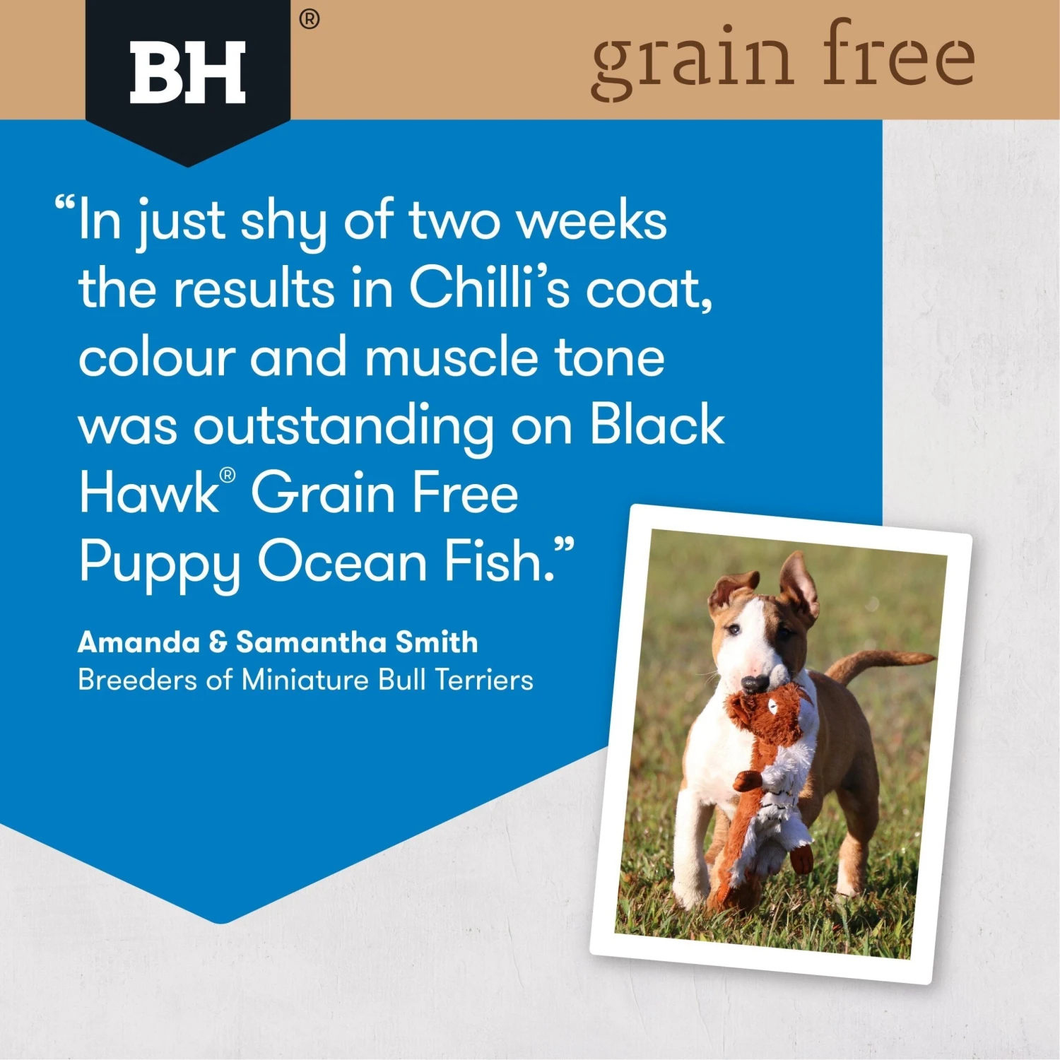 - Once your puppy’s all grown up, introduce them to Black Hawk dry food and wet food