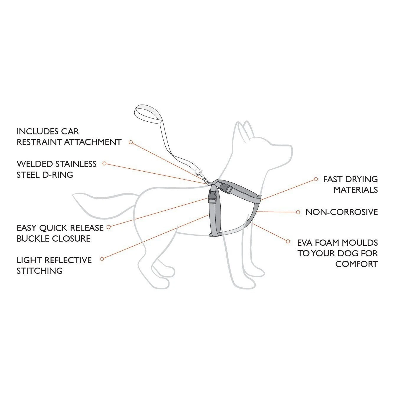 Sure, this harness is comfortable, thanks to its EVA chest support that moulds to your dog’s chest for a custom fit. It’s also really easy to fit to your dog – whatever your dog’s size.