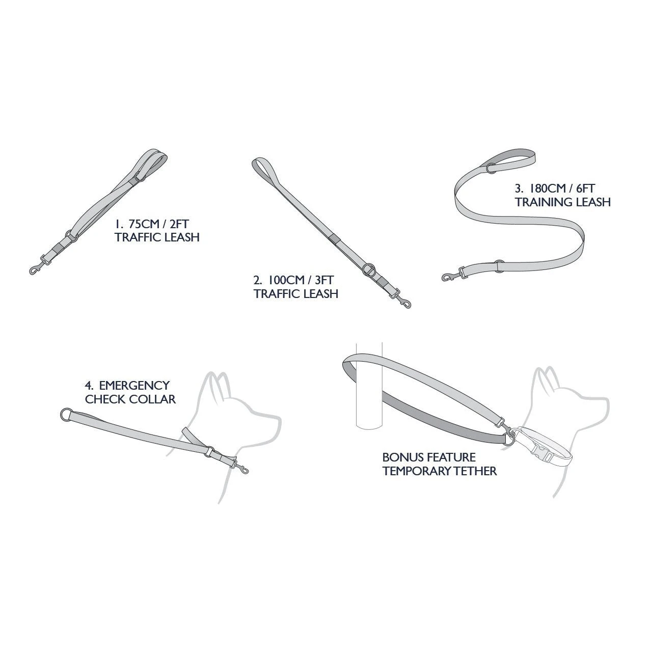 - Multiple functions – use as a standard lead, a traffic lead, a training lead or an emergency check collar