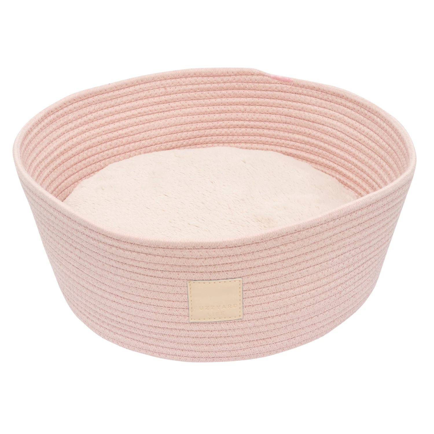- Textured rope basket is made from cotton and polyester rope, with a removable pillow inside