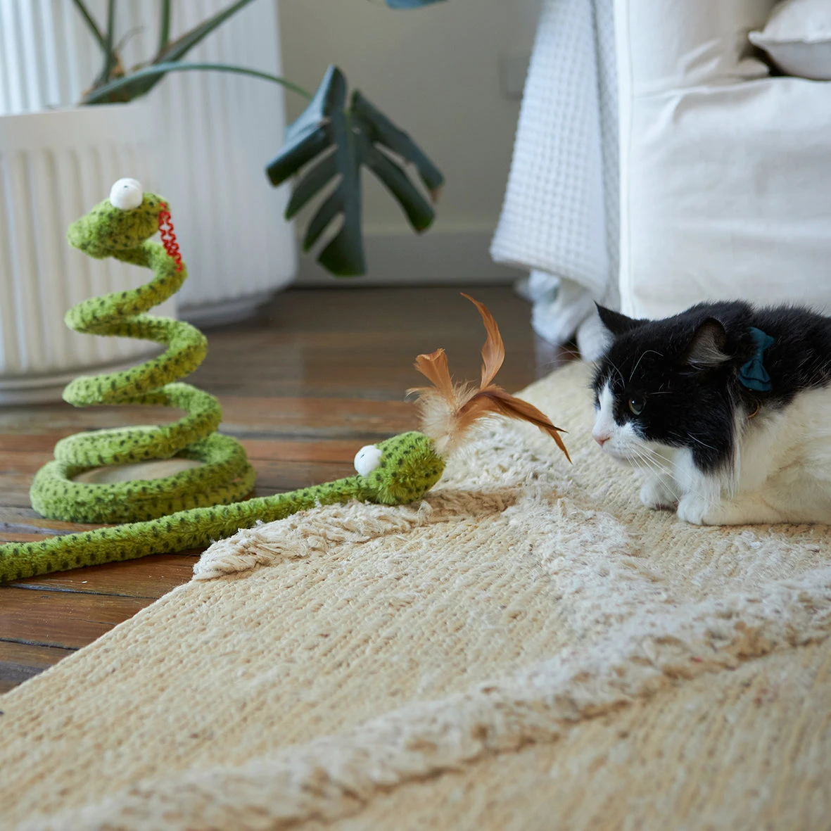 Scaredy cats, don’t worry – this snake isn’t a biter. All they want to do is play with your cat. Take it from us – Kazoo’s Spotty Snake Chase and Play Wand has what it takes to completely charm your kitty.