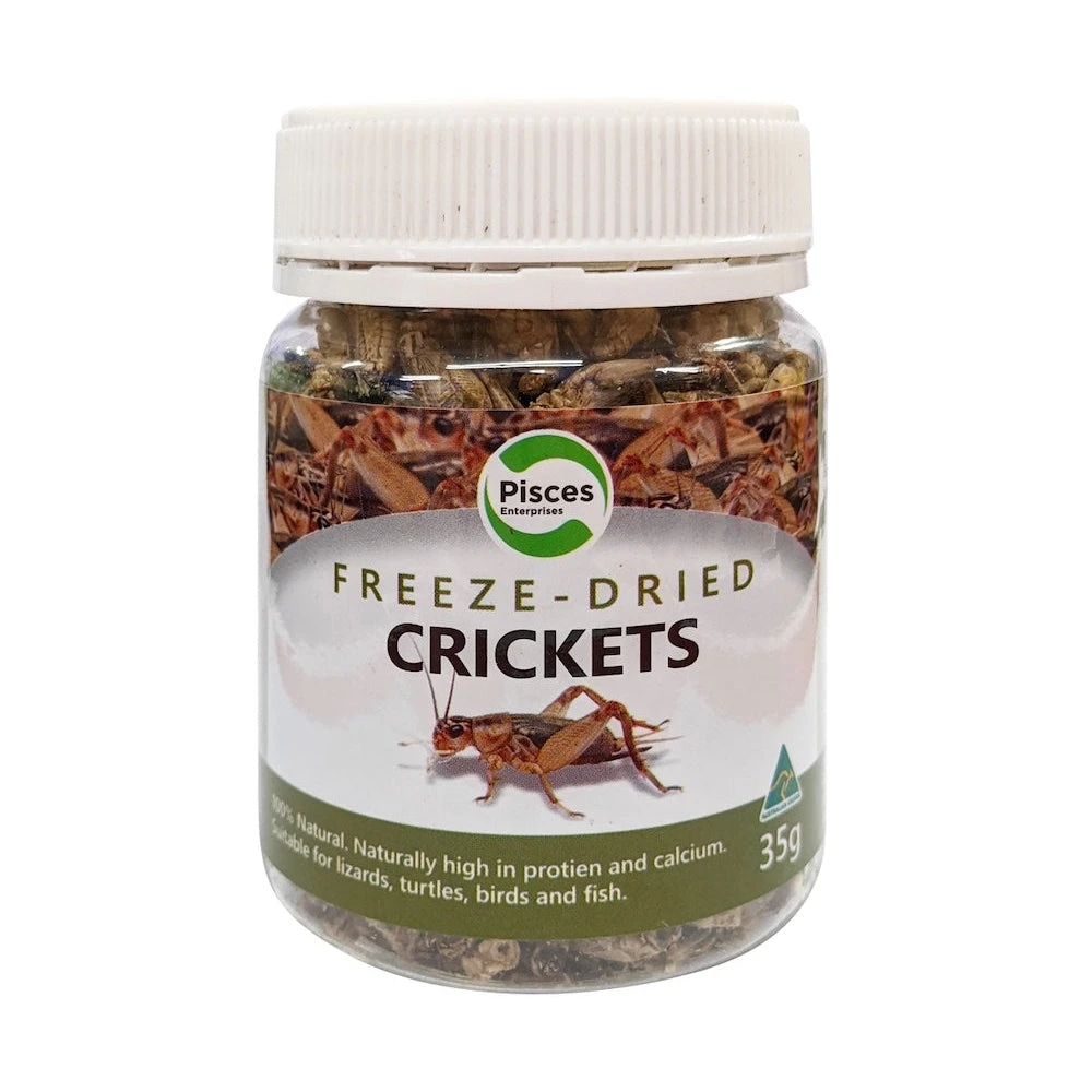 Pisces’ Freeze Dried Crickets make a tasty treat for reptiles.