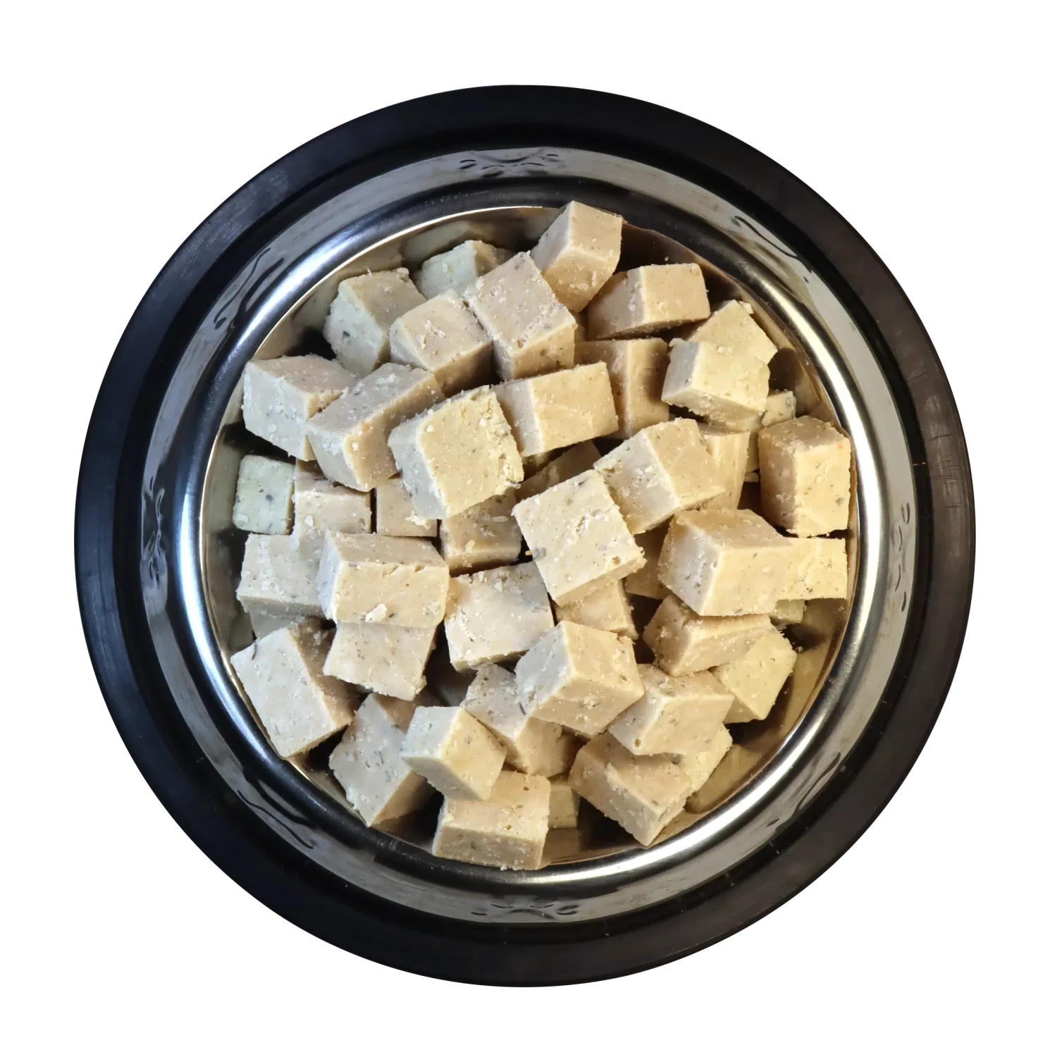 INGREDIENTS: Australian salmon (including ground salmon bone), tapioca, potato, bamboo fibre, vitamins & minerals, salt, functional oil (evening primrose), chicory root extract, taurine, celery seed powder, natural digestive enzymes.