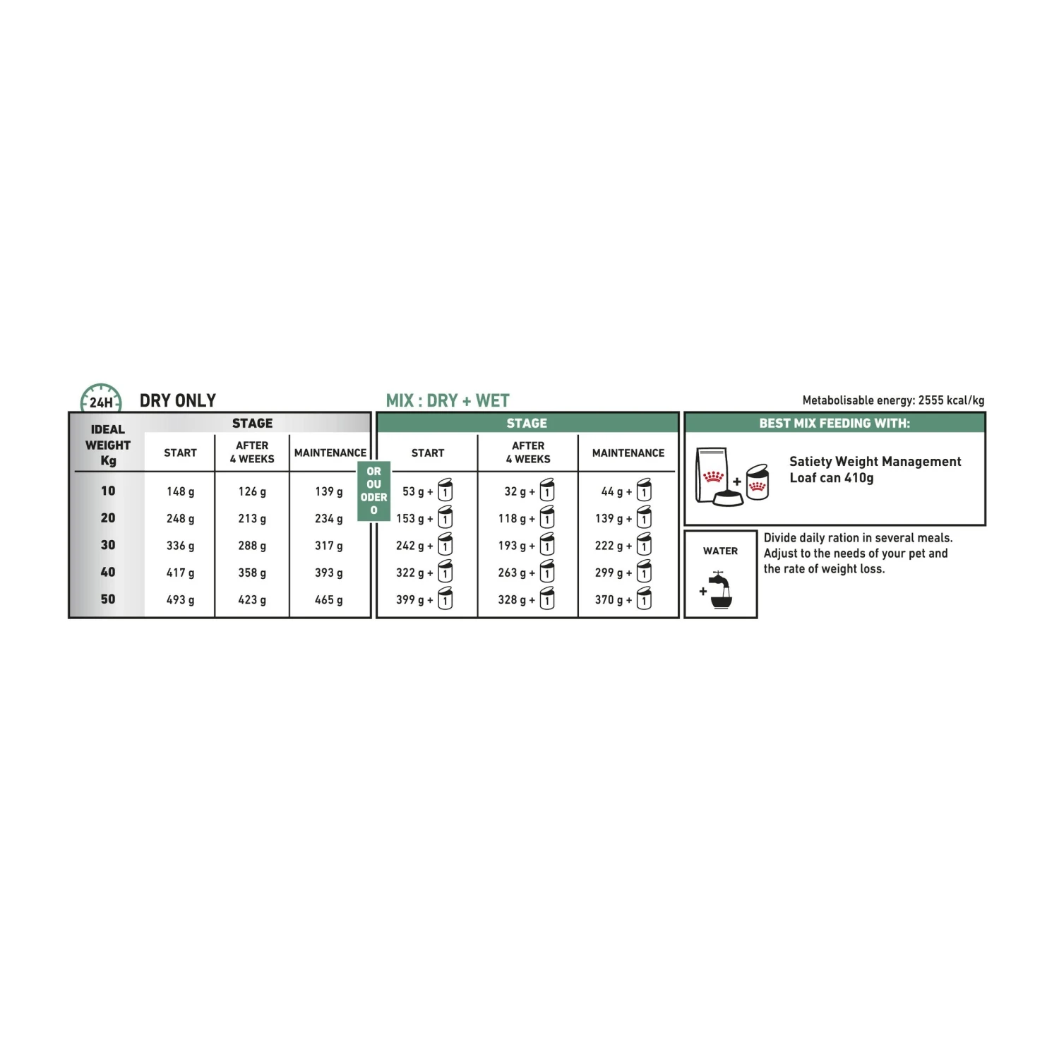 Royal Canin Veterinary Diet’s Satiety range makes managing your dog’s weight easier than ever. When fed correctly, this food will help your dog lose weight safely – and avoid gaining it back. In fact, 97% of dogs lost weight in three months when fed Satiety.