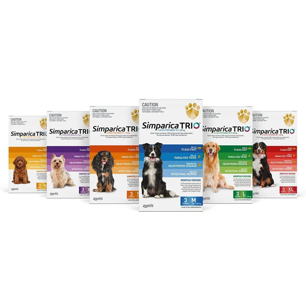Say hello to Simparica Trio. With its clever combo of three optimised ingredients, these chews are everything you need to protect your dog from fleas and ticks, intestinal worms…and even heartworm!