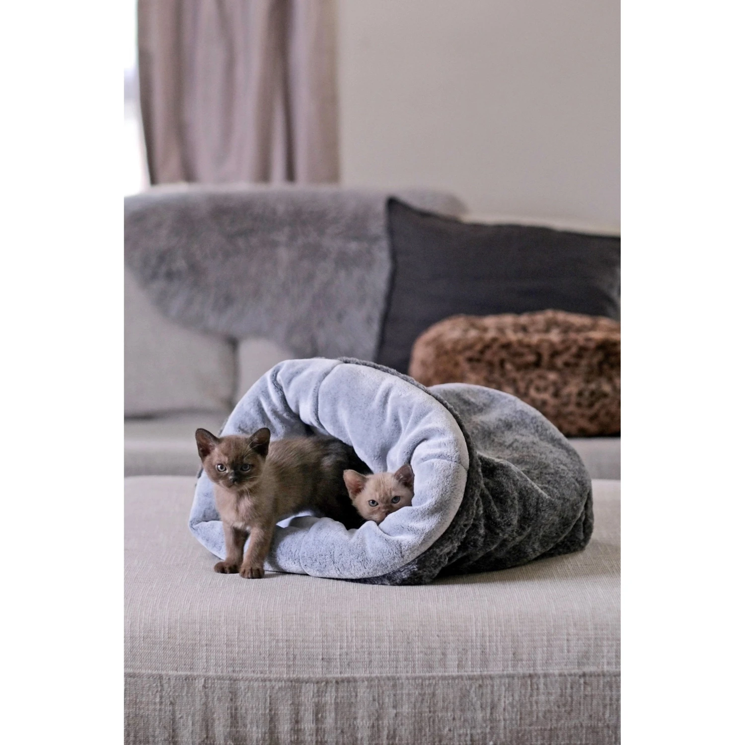 Made from soft faux fur, this versatile bed knows how to keep any cat comfy. Fold back the top and stand it up for your cat to climb in. Lay it down and let your cat curl up inside. The options – like the naps – are endless.