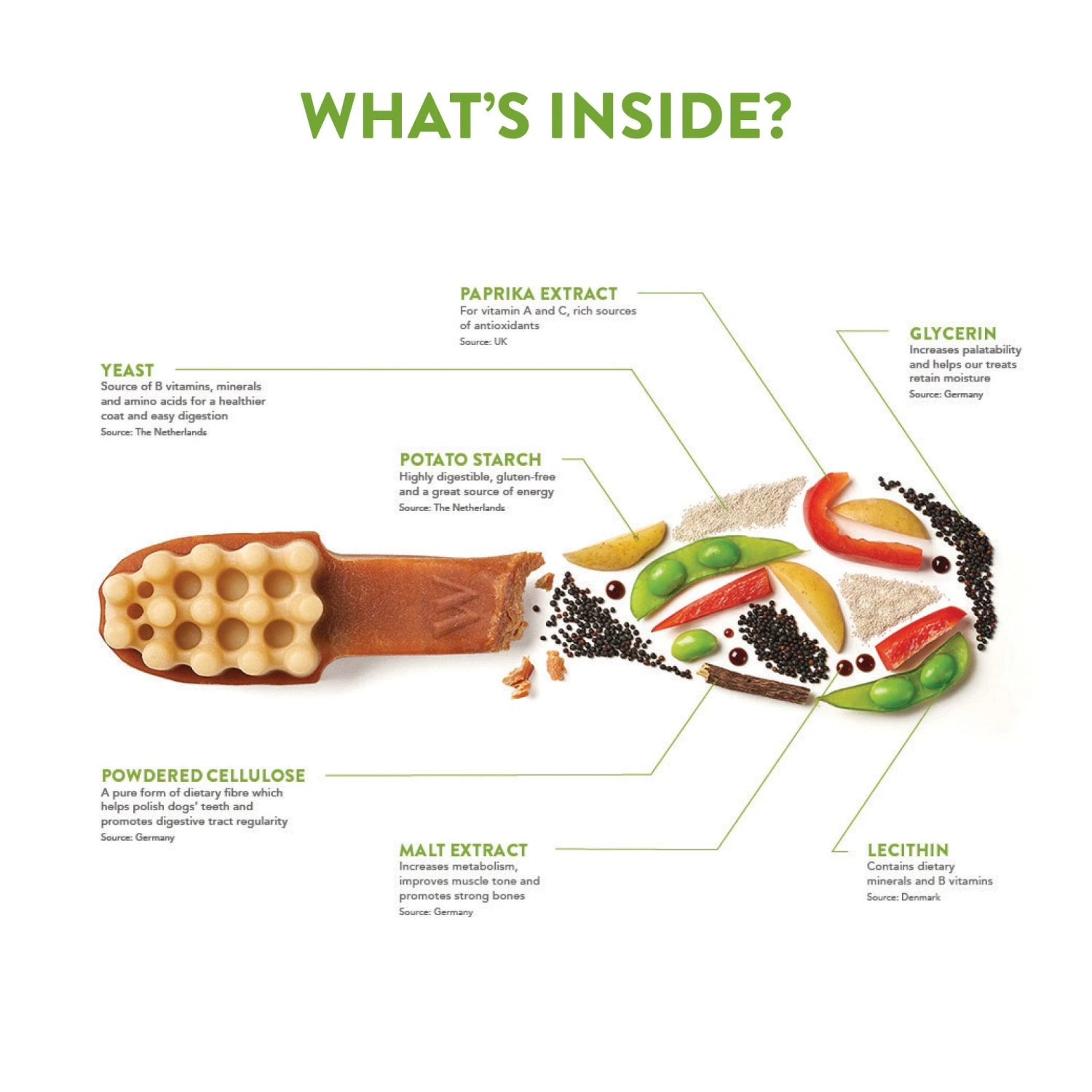 This bulk box contains 30 Large Toothbrush Dental Treats. Looking for a different size or quantity? Take a look at the rest of our Whimzees range!