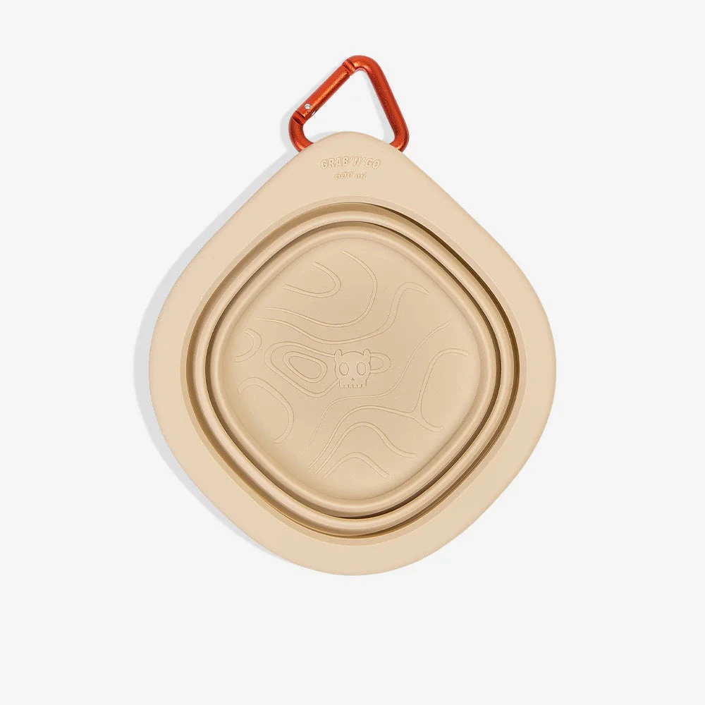 The Go Bowl holds 20 oz (600 ml) and is perfect for both food or water. It stores flat and the attached carabiner makes it easy to grab and go. This travel bowl is easy to clean and can be washed in the dishwasher (top rack only).